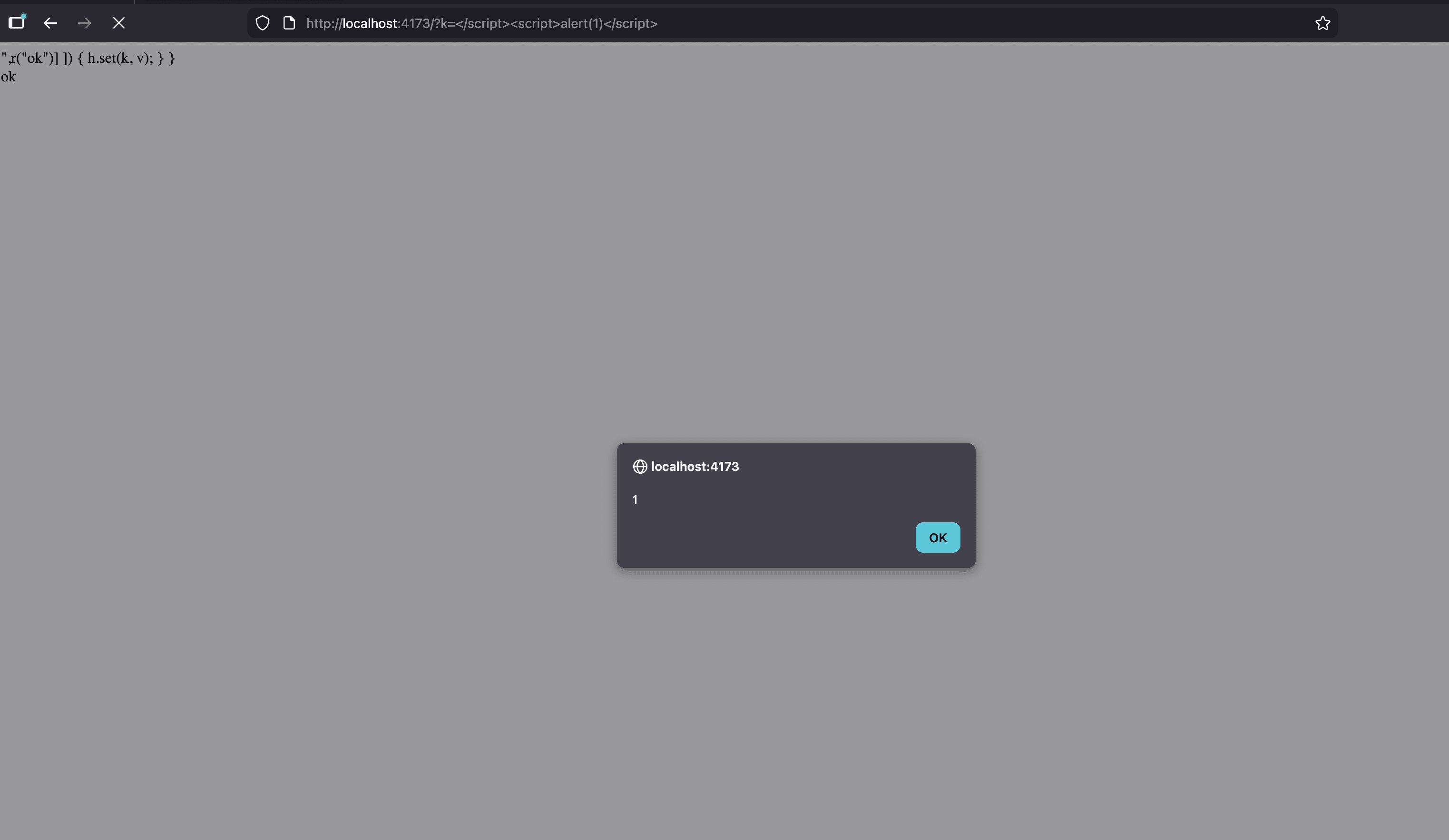 JSON.stringify does not escape <, so a key containing </script> terminates the <script> tag.