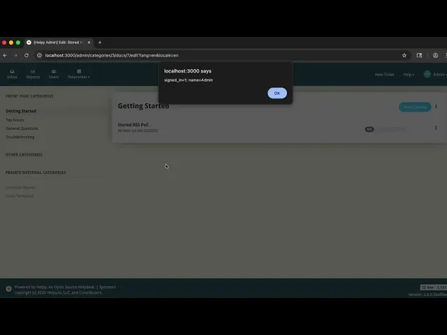 Helpy 2.8.0 - Stored XSS in knowledgebase Doc body rendering